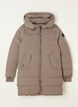 Jade gewatteerde longline jas met capuchon.