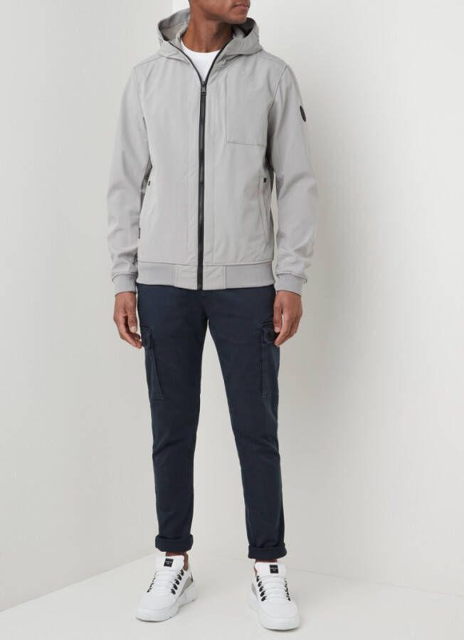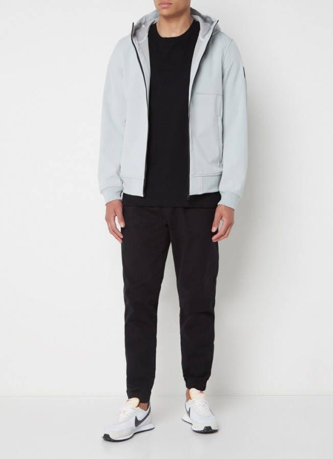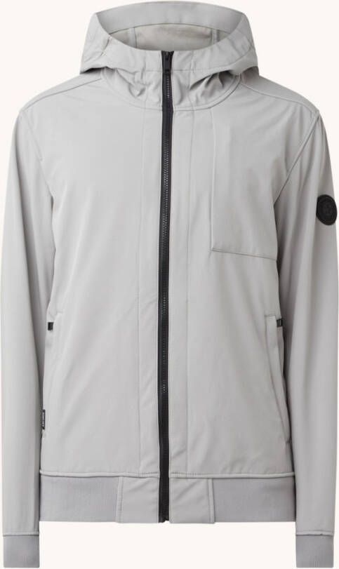 Softshell water- en windbestendig jack met capuchon.