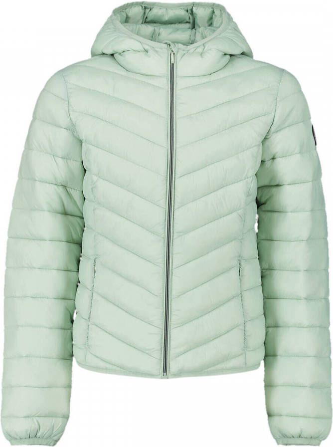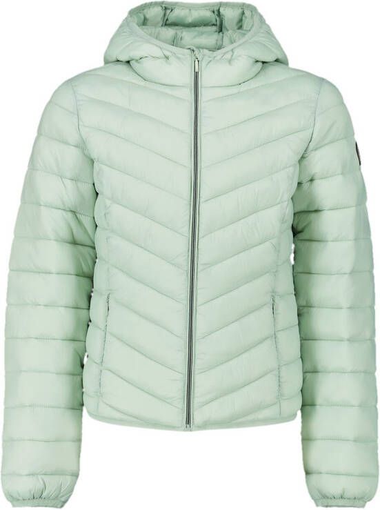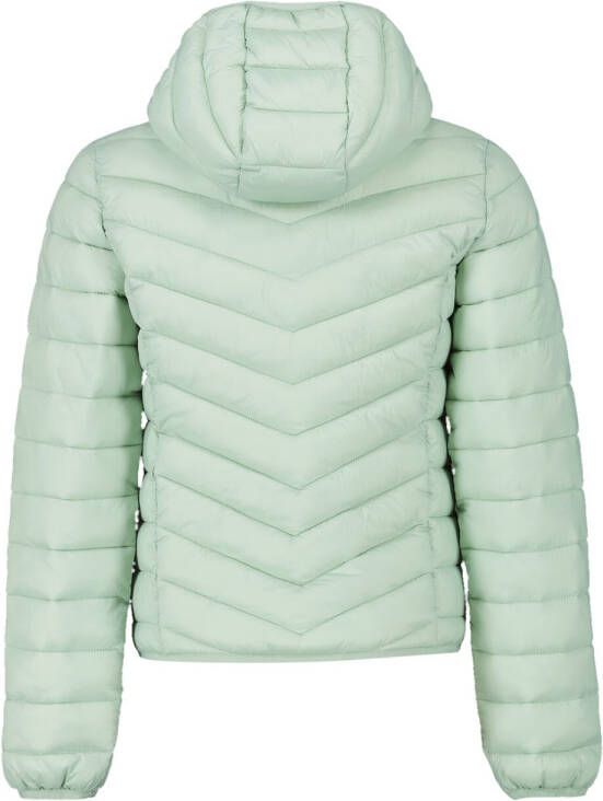 America Today Alice JR gewatteerde tussenjas voor meiden in de kleur groen. Deze fijne jas is gewatteerd en heeft een capuchon en rits aan de voorkant. Tof!.