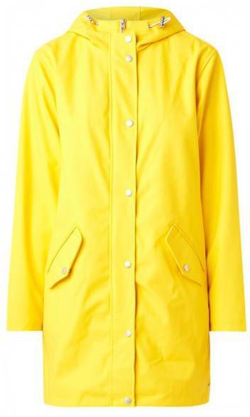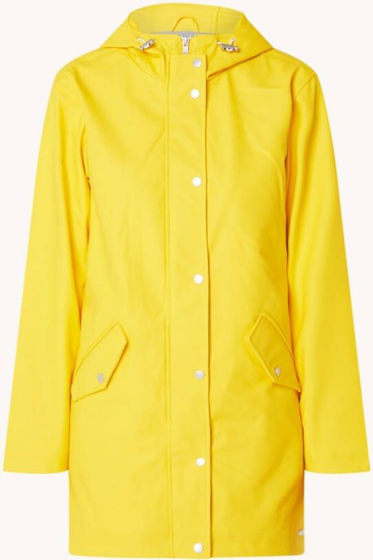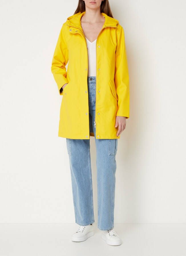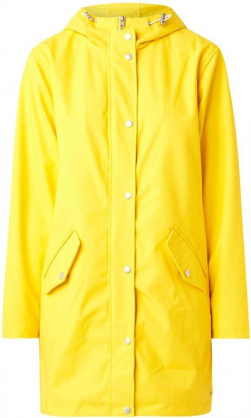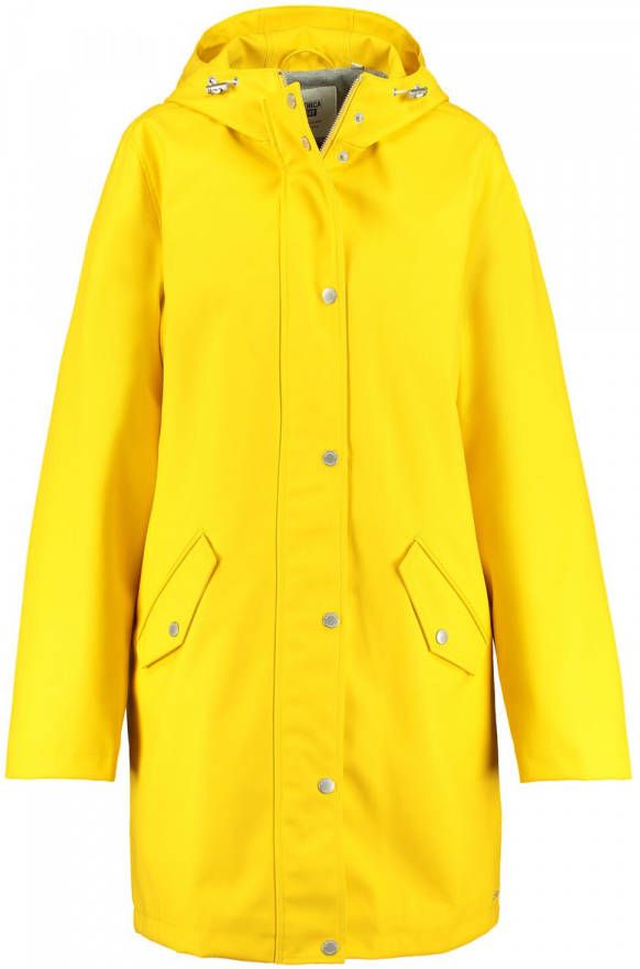 Deze regenjas voor dames van America Today is gemaakt van polyester. Dit model heeft een capuchon, lange mouwen en een rits- en drukknoopsluiting.