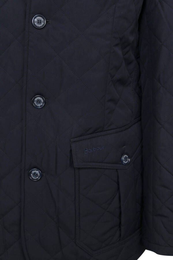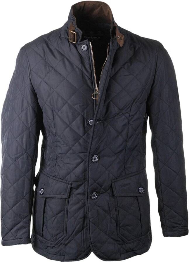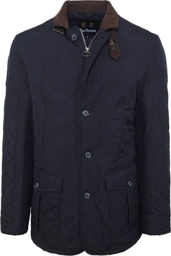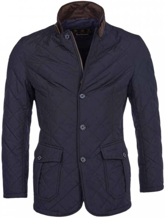Barbour Jas Quilted Lutz Donkerblauw in de kleur Donkerblauw en Blauw met een pasvorm Tailored-fit is gemaakt van Polyester en Nylon met een Effen dessin.