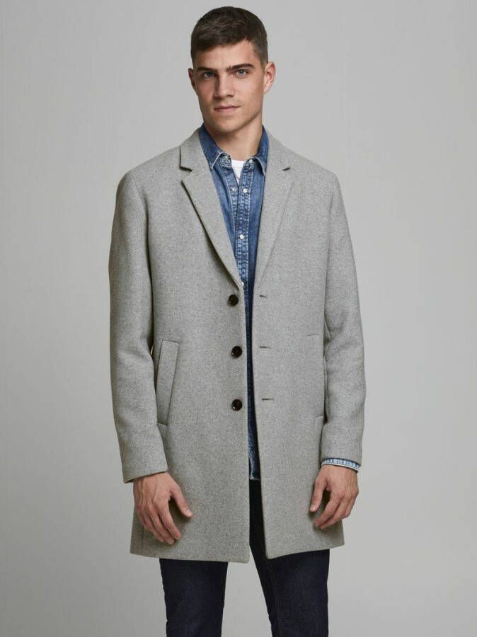 Deze jas voor heren van JACK & JONES ESSENTIALS is gemaakt van een wolmix. Dit model heeft een reverskraag, lange mouwen en een knoopsluiting.details van deze jas:stijlnaam: Mouldergevoerd2 steekzakken.