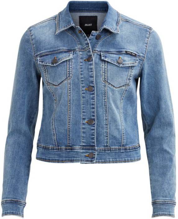 Dames spijkerjasje van het merk OBJECT, uitgevoerd in een stretchdenim kwaliteit.