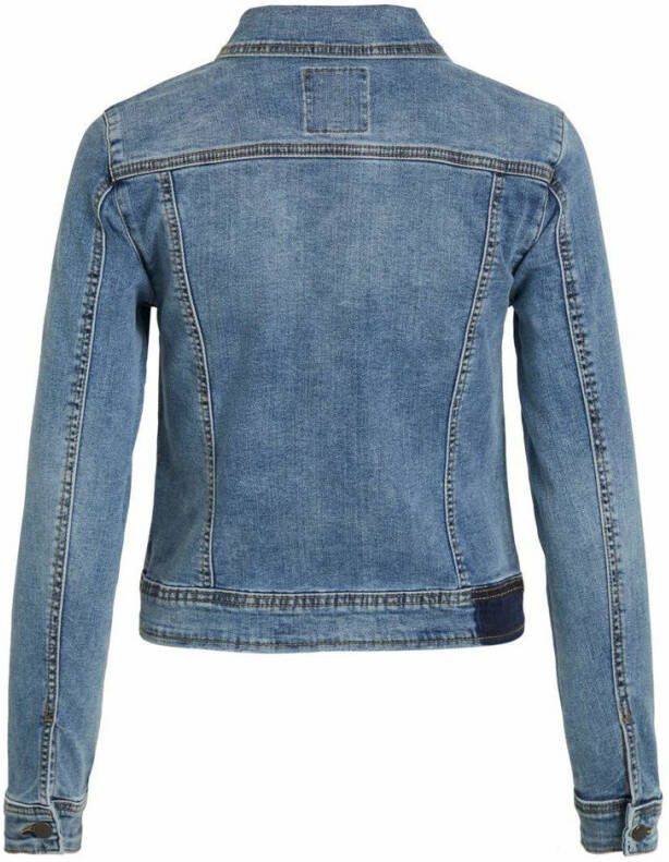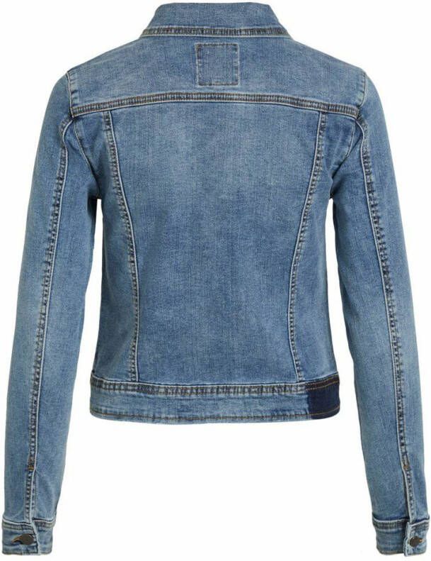 Lekkere stoer spijker jack in een medium blue wassing uit de collectie van Object, model Objwin. Materiaal 95% Katoen 3% Polyester 2% Elastan.