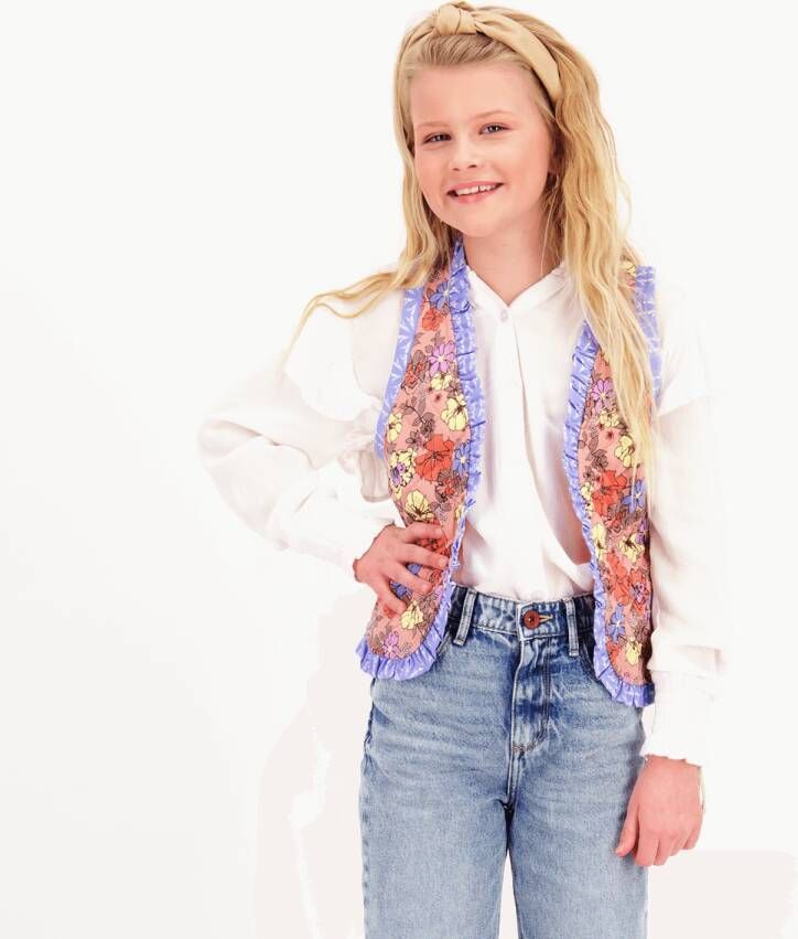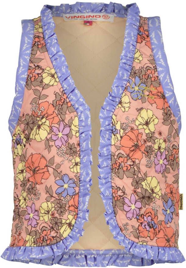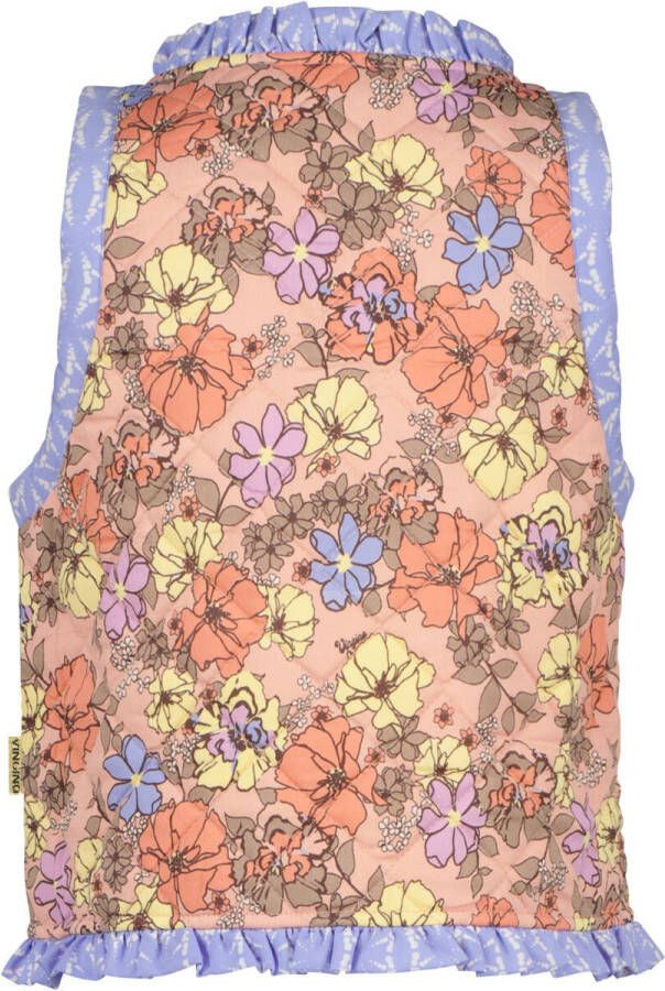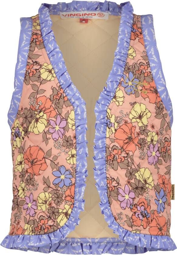 Vingino Tannoek gilet voor meiden. Dit leuke mouwloze gilet heeft een quilted motief, ruffles aan de uiteinden en de vrolijke kleurencombinatie maakt m super uniek. Leuk te dragen over een witte blouse met een jeans!.